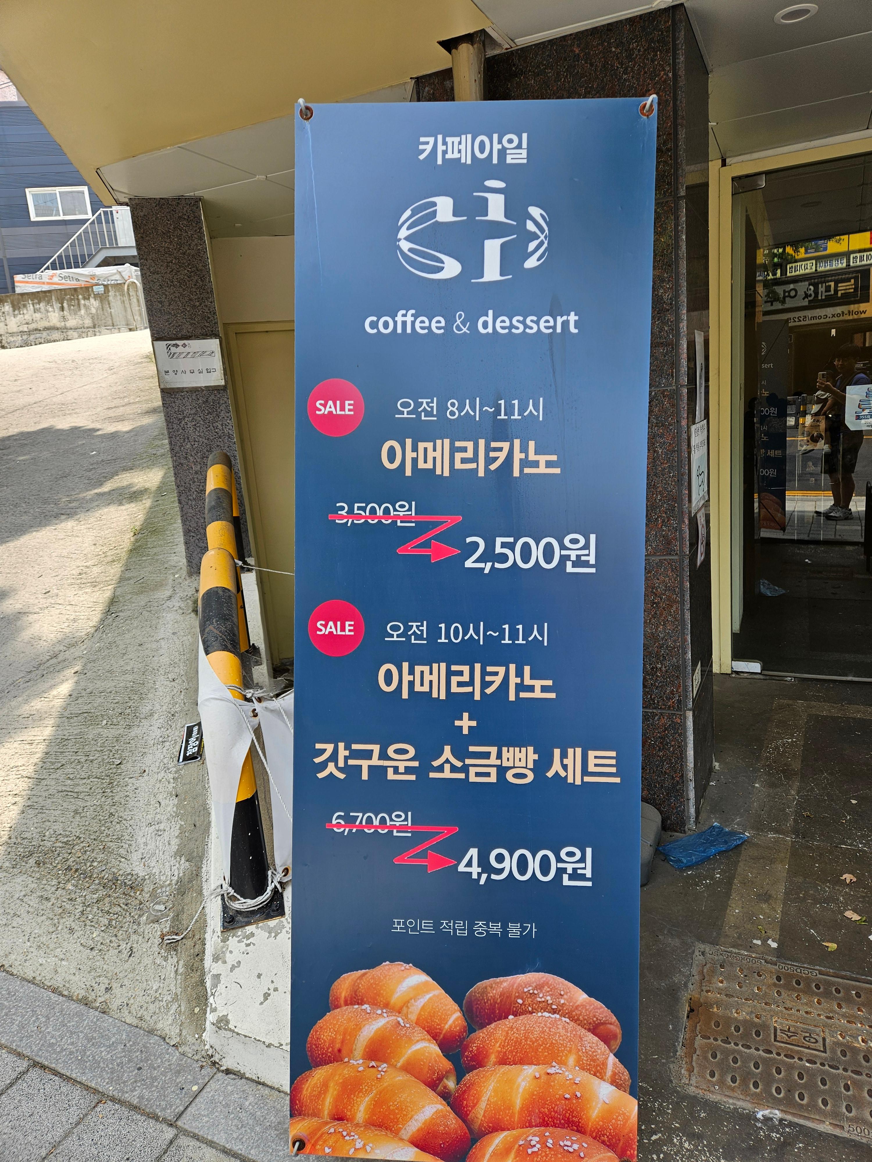 오전에 방문했을 때 아메리카노+소금빵 세트나 4,900원인게 꽤 괜찮더라구요