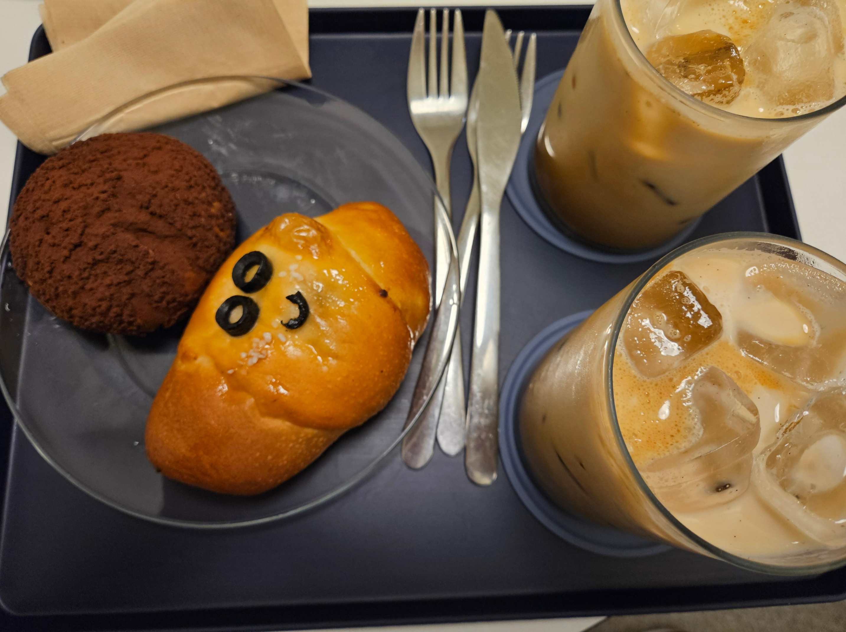 올리브치즈소금빵와 초코쿠키슈, 바닐라라떼를 주문했습니다