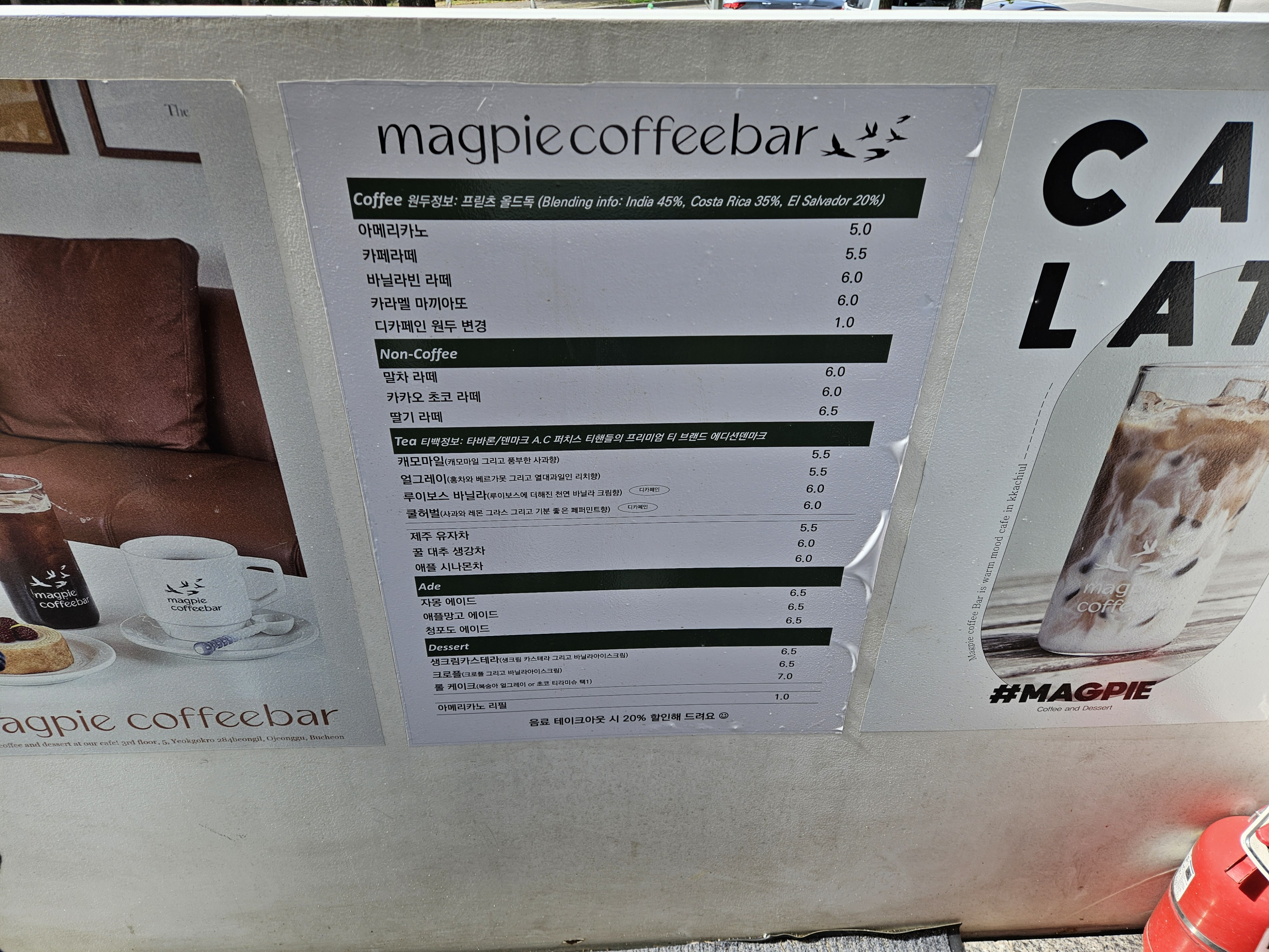 아직 햇빛이 좀 뜨거워서 안에서 커피를 마시긴 헀지만 햇빛이 좀 덜 뜨거워지고 그늘져있으면 밖에서 바람 쐬면서 커피 마시기 좋아보였습니다