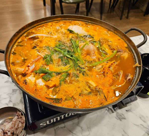 새우, 낙지, 갑오징어, 홍합, 미더덕, 소라, 대구뽈살 등 여러 해산물이 있어 건더기 먹는 재미도 있었습니다